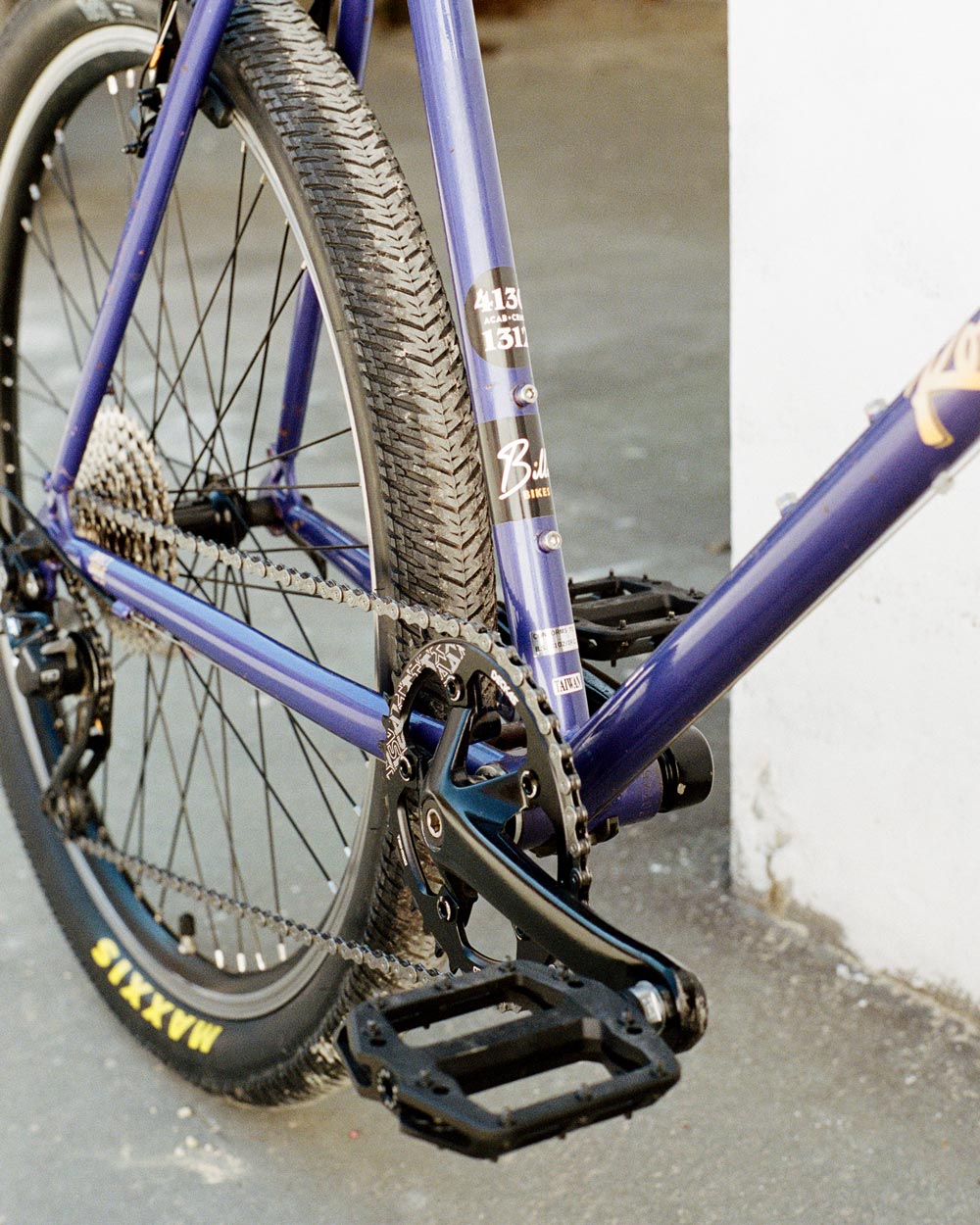Wide rims help to support the 2.3 Maxxis tires and increase their volume. Such rims are hard to come by, as availability is pretty much limited by what happens to pop up on the used market. Most ’90s rims were much narrower.