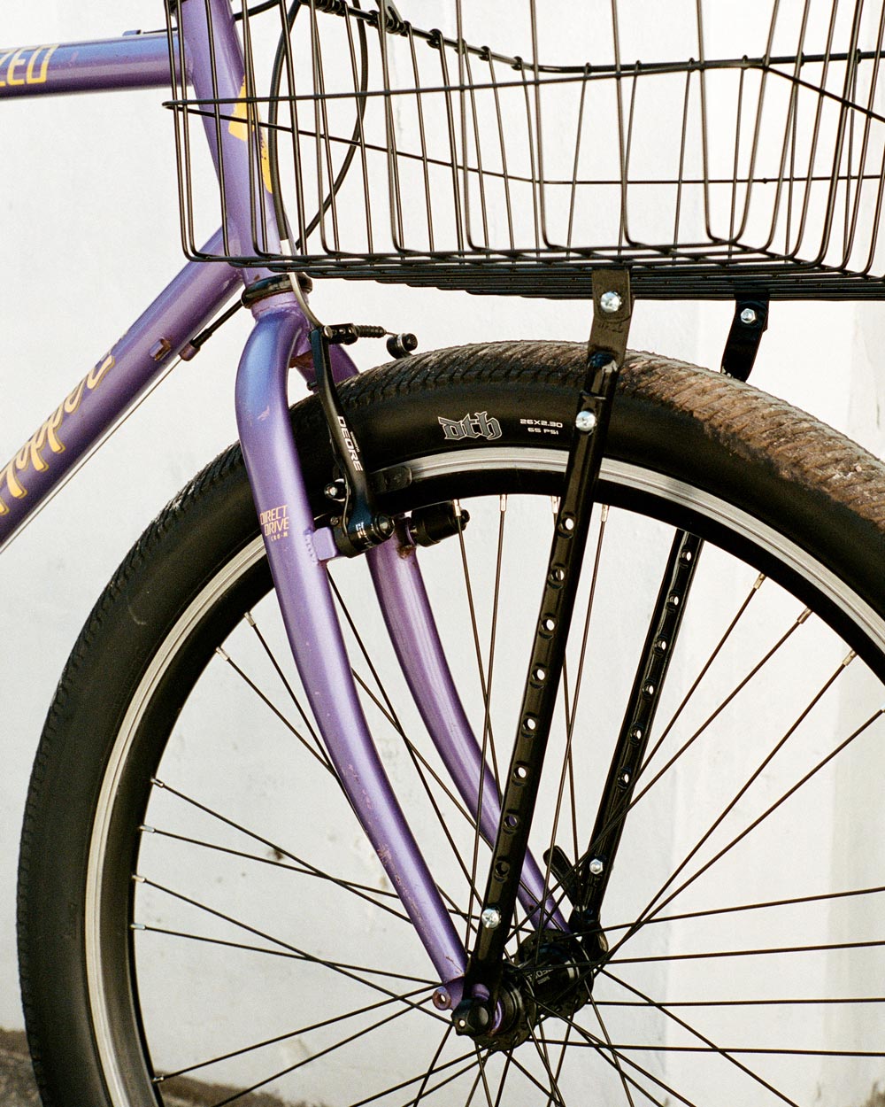 Usually baskets are best mounted to a front rack. However, the large footprint of Wald 139 has a lot of leverage when loaded, and would put a lot of stress on the connection to the rack. In this case it seemed like the safer option to attach the basket with the hardware it came with.