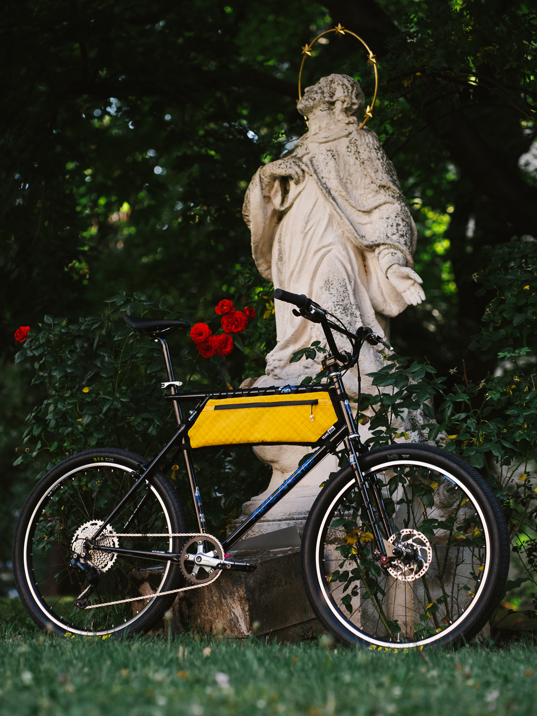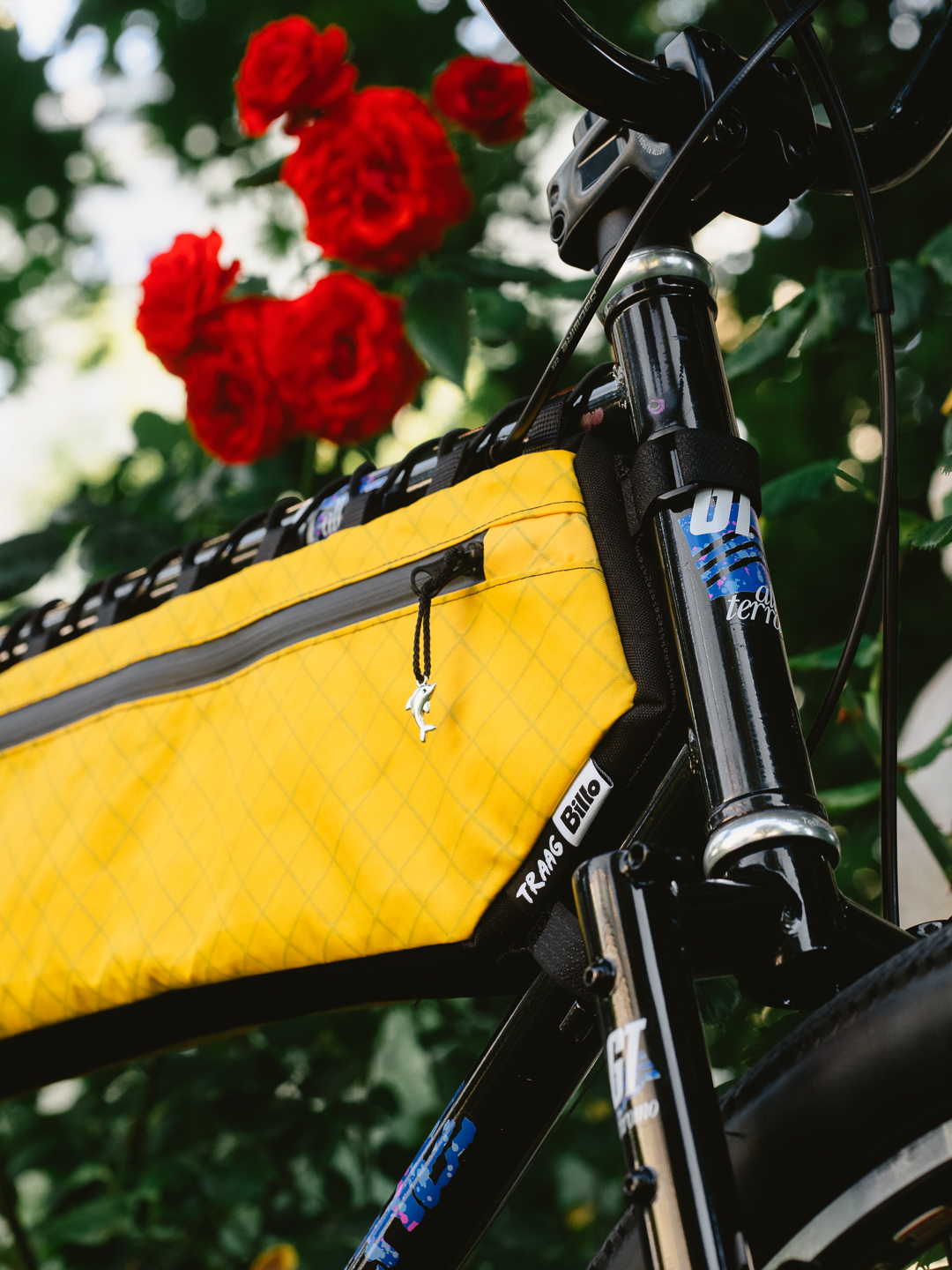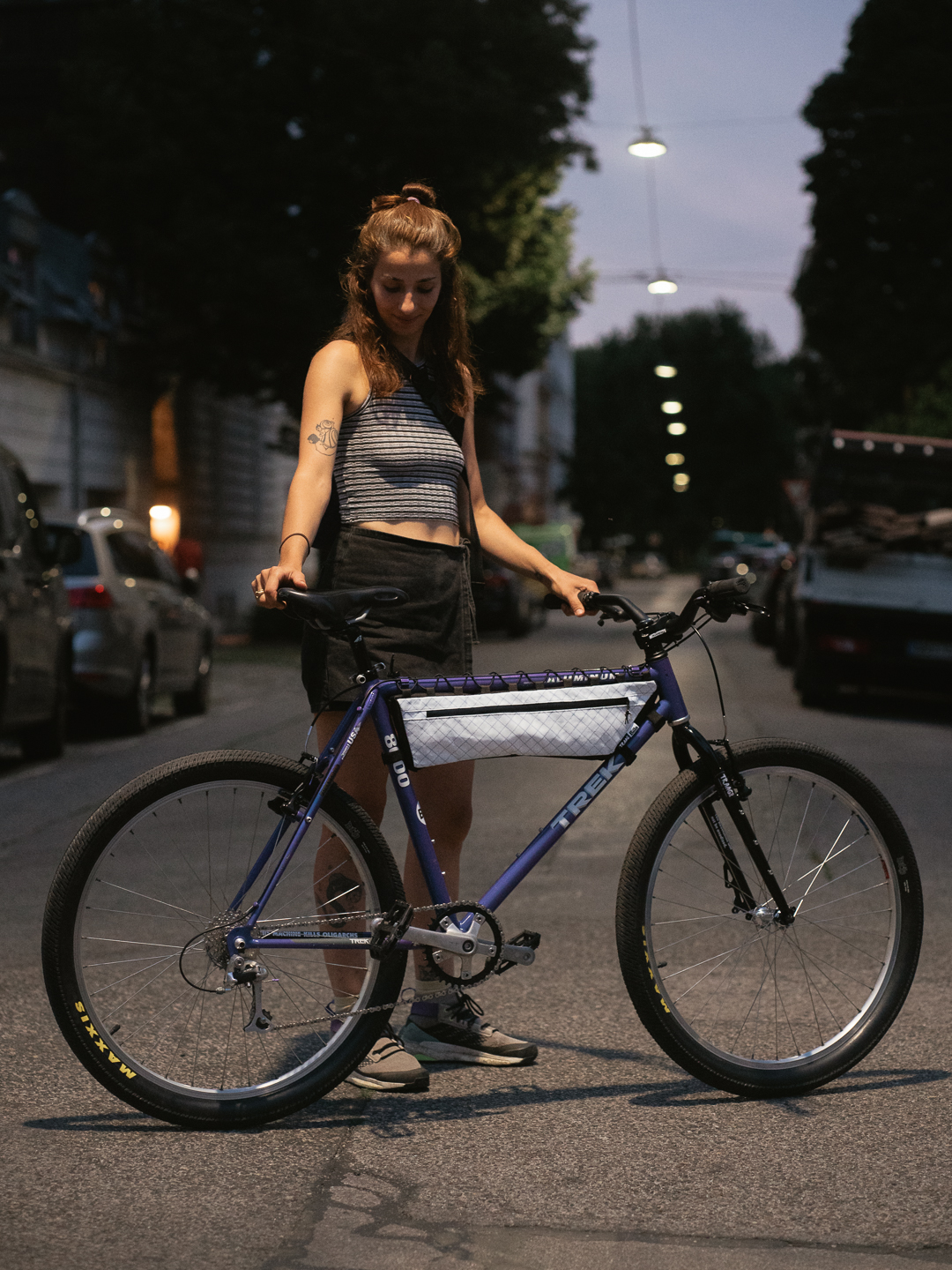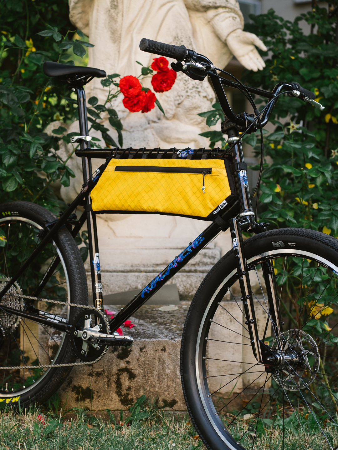 In collaboration with Traag Bags we designed a minimalist framebag for ’90s mountain bikes. Lightweight and waterproof, it’s built to stay on your frame at all times. Think of it like a trunk for your bike. Whether you’re using your MTB for daily commutes, long bikepacking trips or both, you’ll appreciate the storage.