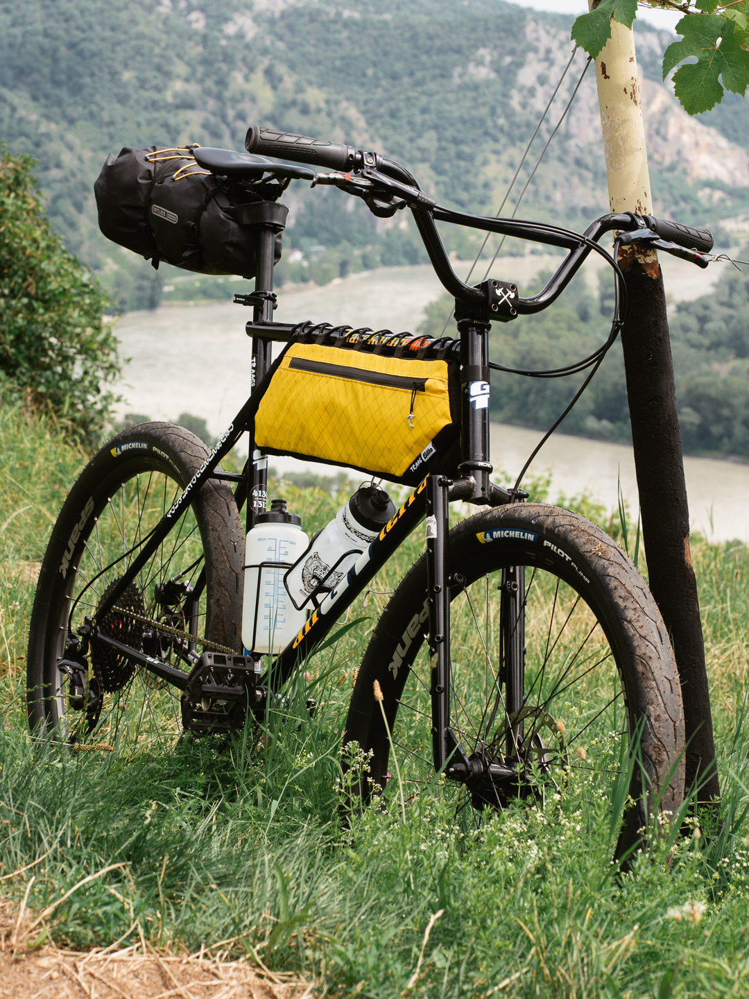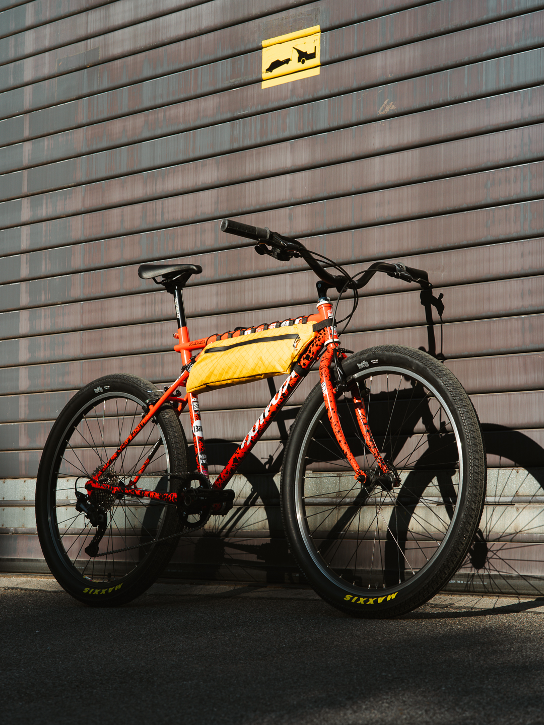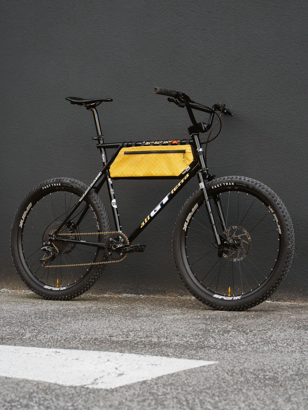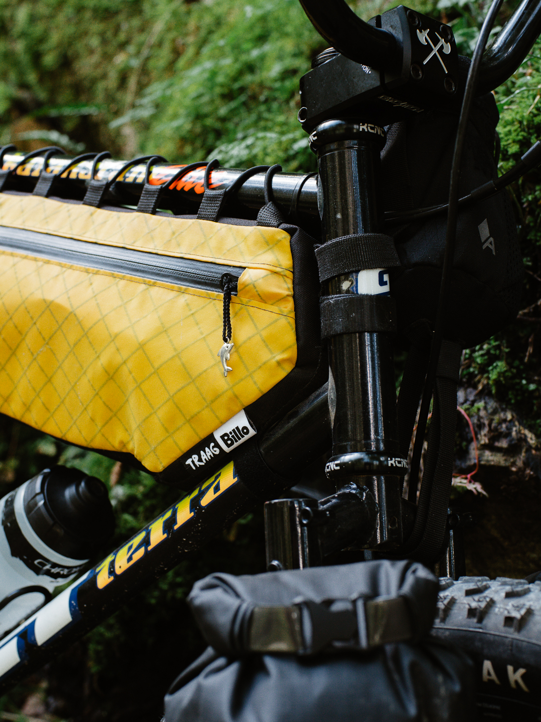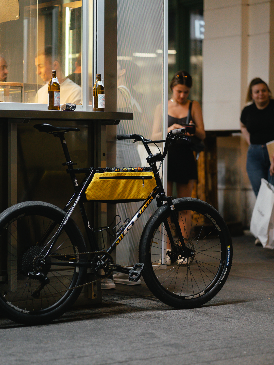 In collaboration with Traag Bags we designed a minimalist framebag for ’90s mountain bikes. Lightweight and waterproof, it’s built to stay on your frame at all times. Think of it like a trunk for your bike. Whether you’re using your MTB for daily commutes, long bikepacking trips or both, you’ll appreciate the storage.